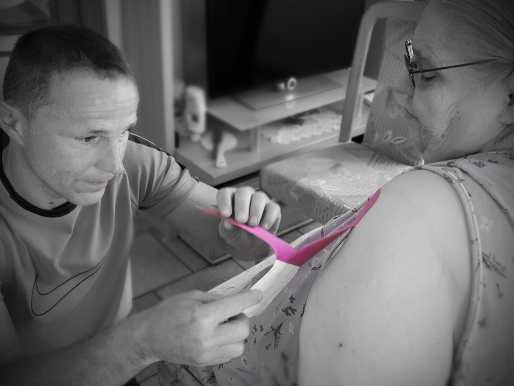 Taping ist eine moderne Methode zur Behandlung von Muskelbeschwerden und Verletzungen. Dabei wird ein elastisches Tape auf die betroffene Körperstelle geklebt, um die körpereigenen Heilungskräfte gezielt zu aktivieren.